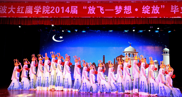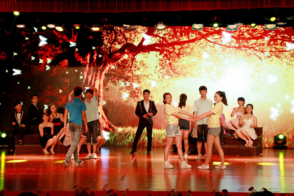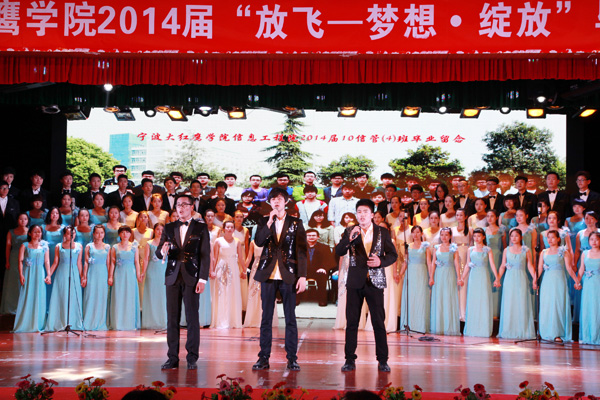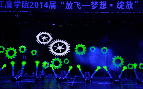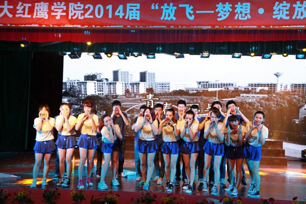 6月6日晚,我校学生活动中心5楼彩幅鲜艳、屏光闪烁。这里,载歌载舞,掌声阵阵;这里,欢声笑语,离愁淡淡。校2014届毕业生晚会正在这里隆重举行。当晚,校领导孙惠敏、王云儿、林长兴、李羽、高振强、许锁迪、何秋叶,各分院院长、书记以及毕业班班主任、辅导员与全体毕业生一同观看了这台精彩的晚会。 晚会以“放飞——梦想 绽放”为主题,分“燃烧岁月”、“光阴故事”、“梦想绽放”三个篇章进行。 晚会在《我们毕业了》的音画视频中拉开帷幕。校艺术团舞蹈分团的成员们踏着青春的舞步、带着自信的笑容演绎了舞蹈《青之韵》,展现出了大学生的青春活力和风采;音诗画《归来》、校友赵彬无瑕筝舞乐坊所带来的古筝合奏《青花瓷》等节目让现场观众激情澎湃;音诗画《再回忆,我的青春》把在场的毕业生们带回到之前的大学生活;群舞《金色汤瓶》、歌曲《光阴的故事》、《致青春》让人感受到了更多离别之情。教师节目《启航》把整场晚会带入了高潮,7位演唱老师为毕业生们送上了最美好的祝福。最后,校合唱团的《祝福》表达了对即将走上征途的学子们无限的眷恋和深深的祝愿。 精彩的晚会持续近两个小时。虽然离别时刻难免忧伤,师生之情依依不舍,但是天下没有不散的筵席。伴随着《难说再见》动人的歌声,师生们深情拥抱。到场领导、老师和同学以经久不息的掌声共同祝福2014届毕业生携梦远航、共赢未来。
