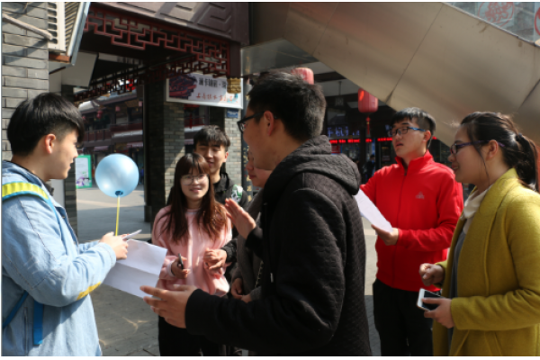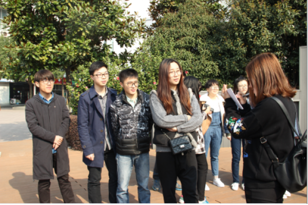 本次活动共分四个队伍,每个队伍在活动开始前确定队名、口号以及队歌。接着,活动在画画传递猜词的游戏中拉开序幕。抽象的绘画,异想天开的脑洞。在正确猜对词语后,每队纷纷拿取自己的任务卡,前往鼓楼和天一完成第二个任务。经过一番地毯式搜索,各队陆续找到对应颜色的气球,完成你演我猜以及知识竞答等任务。其中,选手们发挥想象,团结合作,在较短的时间内完成任务并提取任务卡,赶赴另一个地点。途中,各选手根据任务卡上的提示,寻找与任务卡上的信息相对应的店铺,以及和自己穿着相同衣服颜色的有缘人进行合照。四个队伍争分夺秒,在完成任务后,纷纷找到提示中的工作人员核对信息。其中“泡椒甜品”队用时最短,获得胜利。经过一上午的努力,四个队都完美地完成了任务,安全返回学校。本次素质拓展获得在合影中划上圆满的句号。