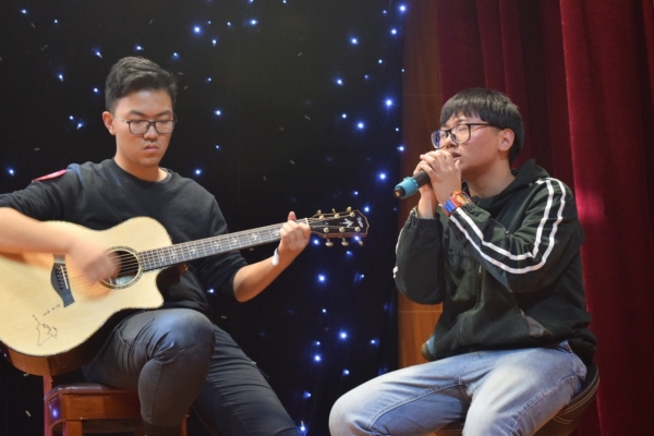 音乐分享会以一首齐秦的《怀念的播音员》拉开序幕,展现了90年代民谣音乐的独特魅力。接着主持人马莎与嘉宾宏源谈及上世纪助推华语流行音乐的电台DJ——电台男主持人气居高,拥有众多女粉丝,既能煲鸡汤也能帮忙绿化办公室。此时我校的吉他手弹奏起了老狼的《同桌的你》,在场的同学受到现场氛围的影响,跟着乐队演唱者一起唱着。随即台上聊及这首歌的作词人高晓松,讲述高晓松和老狼为我们带来的校园民谣,代表作有《同桌的你》《恋恋风尘》。