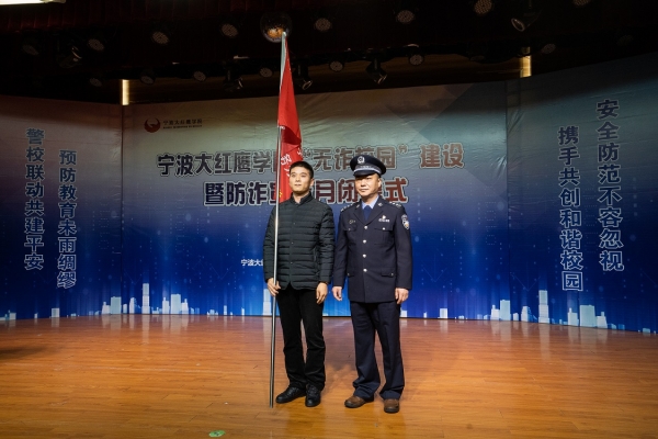 大会表彰了在防范电信诈骗H5抖音海报设计大赛的获奖人员,会上公安代表高桥派出所教导员对本次“无诈校园”建设宣传月的的工作作了总结。他指出本次无诈月的相关活动与以往相比受众群众最广,活动形式最多样,主动参与度最高;还取得了三大成效,活动结束后,周边发案率下降明显,新建立了反诈志愿服务队伍,校地双方共建结对更深入,对促进平安校园,平安高桥的建设起到了一个至关重要的作用。校长助理何秋叶老师就如何共建平安校园工作常态化,让学生组织融入“平安高桥”建设中来提出了三点希望。何老师指出,强化安全意识最重要,落实校警联动协同育人最关键,加强网络宣传教育最有效。借此次大会之机,我校聘任了高桥镇的民警为我校的法制辅导员,和高桥镇政府签了结对协议,相关领导也为我校代表授旗。