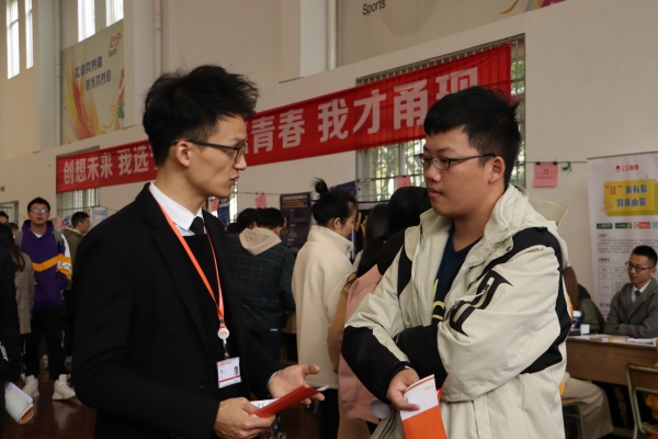 11月29日,我校“千校万岗 你我同行”大学生就业招聘会在学校南区体育馆举行。招聘会共有来省内外210家企业入驻,提供5000个面试岗位。本次招聘会在“一对一”征集我校21位2020届毕业的建档立卡贫困学生求职意向后,针对性提供了52个岗位,得到同学们的欢迎。