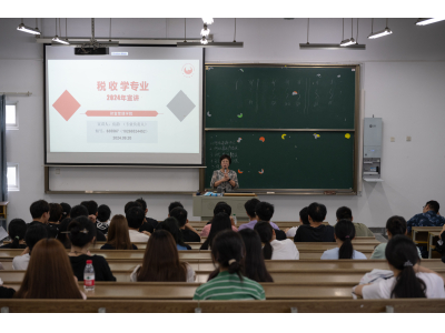 税收学专业讲座分为五个部分。第一部分为人才需求,由应韵老师主持,并细致分析了当前税收学专业人才需求状况;第二部分为培养要求,介绍了税收学所需要学习的专业课程及证书需求;第三部分为师资力量,介绍了我校税收学的教师队伍;第四部分为教学条件,从专业实验室、实习基地、专业社团三个方面展示了我校教学条件的优势;第五部分为就业方向,通过对当前市场的分析,为新生讲解税收学的就业前景,给予新生奋斗的目标。
