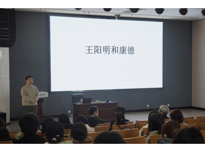 讲座伊始,陈教授采用戏剧的形式,邀请两位嘉宾现场演绎王阳明和康德的跨时空对话,抛出关键议题:身处百年未有之大变局,先哲思想于当下社会有无借鉴意义?以此开启探寻之旅。