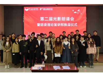 光影织就诗行,声音传递力量。11月23日,我校象山影视学院“2025年第二届光影朗诵会暨团委理论宣讲部换届仪式”在学院实验报告厅隆重举行。院党委副书记张恩茂、团委书记张明珠与宣讲团、朗诵社等影视学子齐聚一堂,共同见证了一场融合诗意朗诵与责任担当的青春盛会。