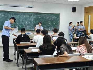 2025年10月14日,为提升象山影视学院新生的防诈、反诈能力,大目湾派出所民警通过教室集中宣讲+寝室逐户走访的双线模式,为2025级新生送上精准反诈安全课。 首先民警来到教...