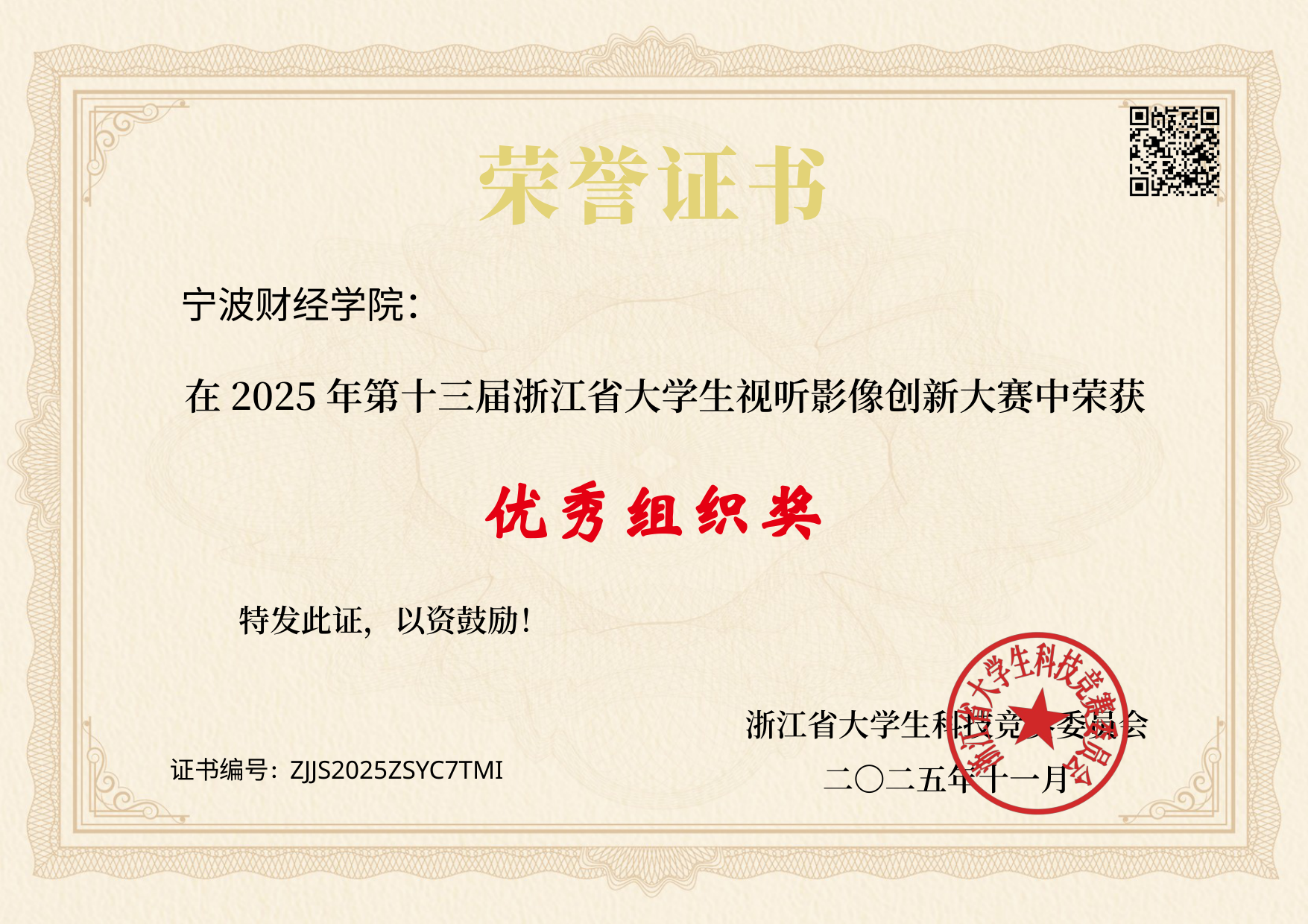近日, 2025年第十三届浙江省视听影像创新大赛玉琮杯大学生清廉微电影微视频专项赛道评选结果揭晓。宁波财经学院象山影视学院学子表现优异,共斩获一等奖1项、二等奖3项、三...
