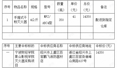 宁波财经学院象山影视学院灭火器采购项目结果公示