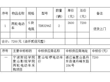 宁波财经学院象山影视学院两轮电动车采购项目结果公示