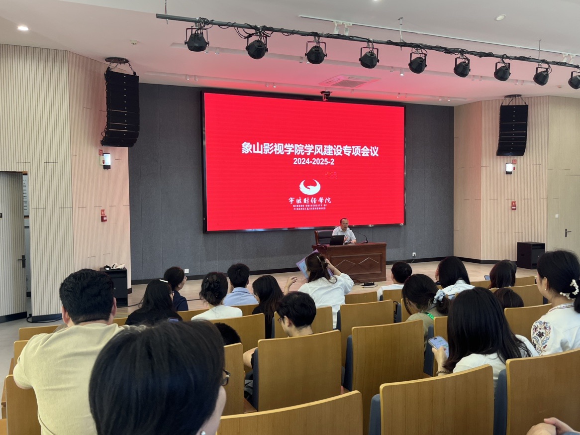 2025年5月29日下午,象山影视学院在实验剧场小报告厅召开2024-2025学年第二学期学风建设专项会议。会议由教学副院长殷均平主持,全体专任教师参与,共同探讨学风建设深化路...