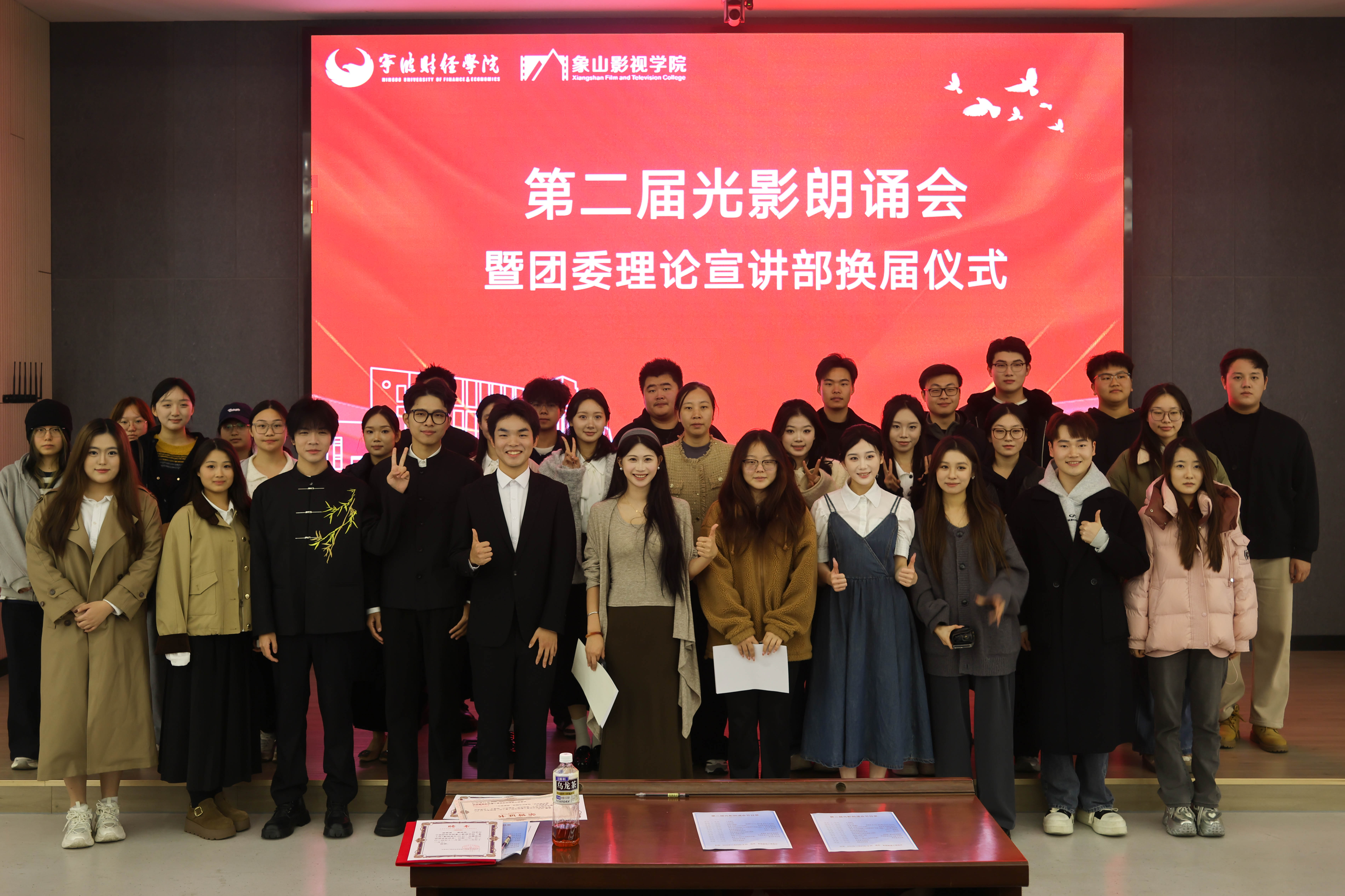 光影织就诗行,声音传递力量。2025年11月23日,宁波财经学院象山影视学院2025年第二届光影朗诵会暨团委理论宣讲部换届仪式在学院实验报告厅隆重举行。学院党委副书记张恩茂...