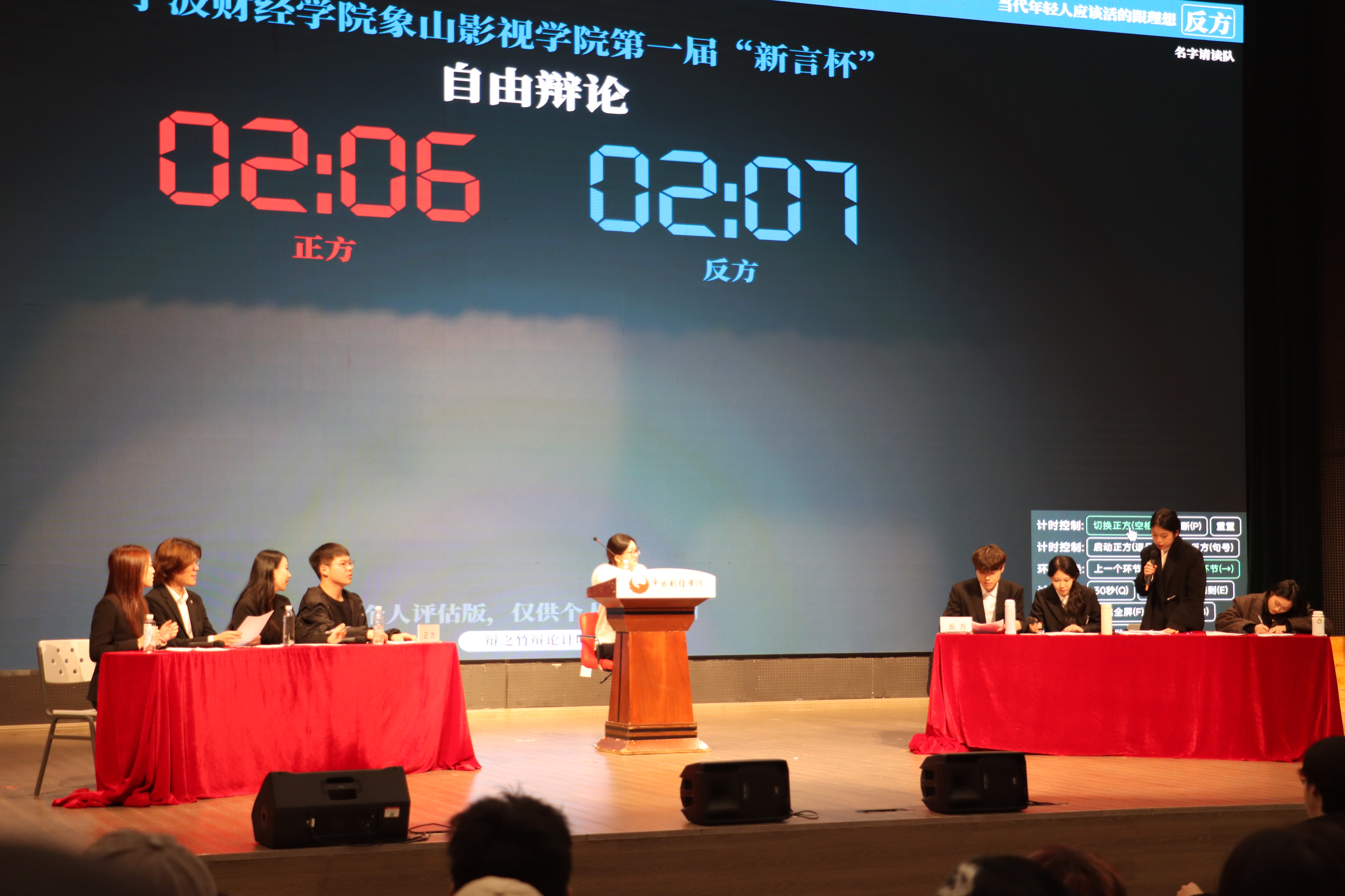 2025年11月23日晚,象山影视学院首届新言杯大一新生辩论赛决赛在实验剧场圆满落幕。正方王晨睿你说的队与反方名字请读队围绕当代年轻人应该活得更现实还是更理想这一时代命...
