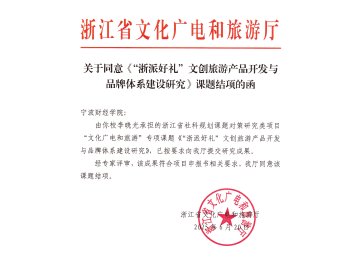 近日,我院李晓光教授负责的2024年度浙江省哲学社会科学规划部门合作专项研究课题《浙派好礼文创旅游产品开发与品牌体系建设研究》顺利结题。 2024年度省社科规划部门合作专...