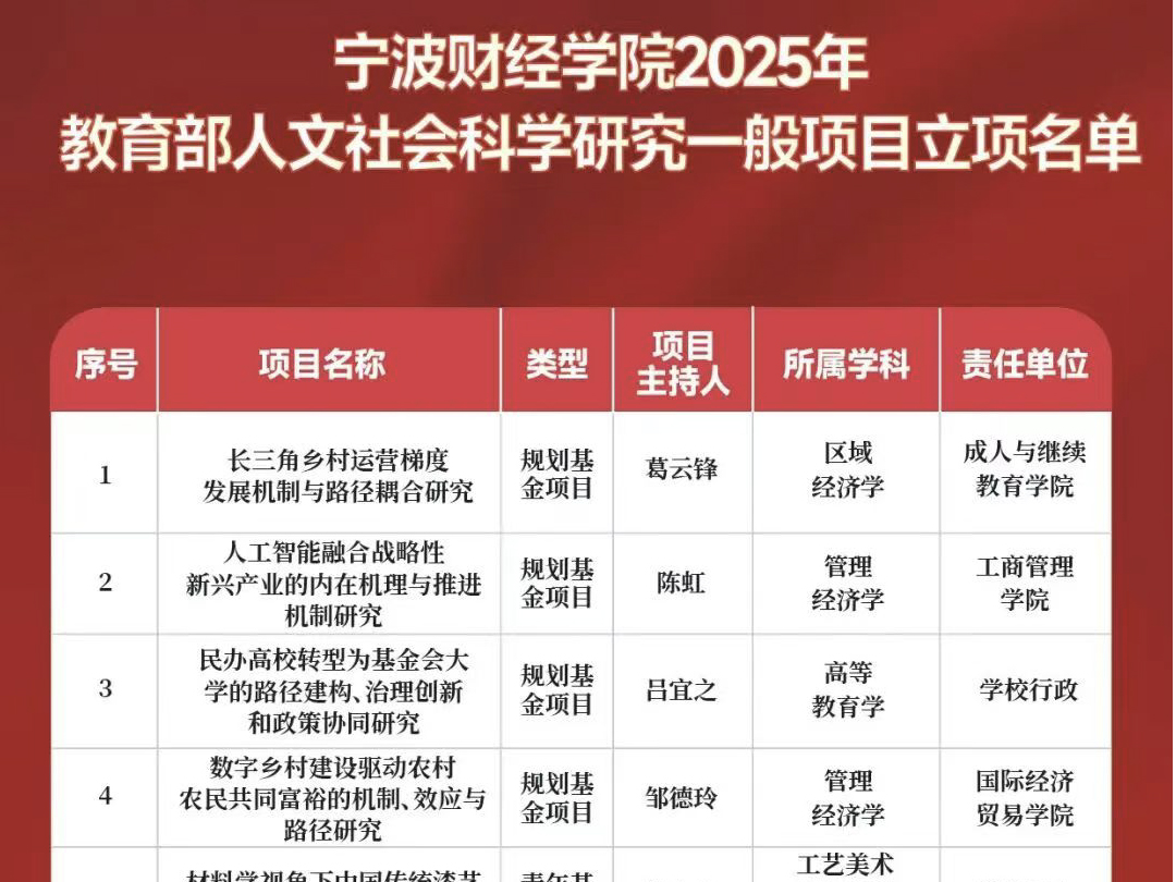 近日,2025 年教育部人文社会科学研究一般项目立项结果公布,宁波财经学院象山影视学院马海娇老师主持的《人工智能时代中国国际传播中敌意媒体效应的形成机制与治理策略研究...