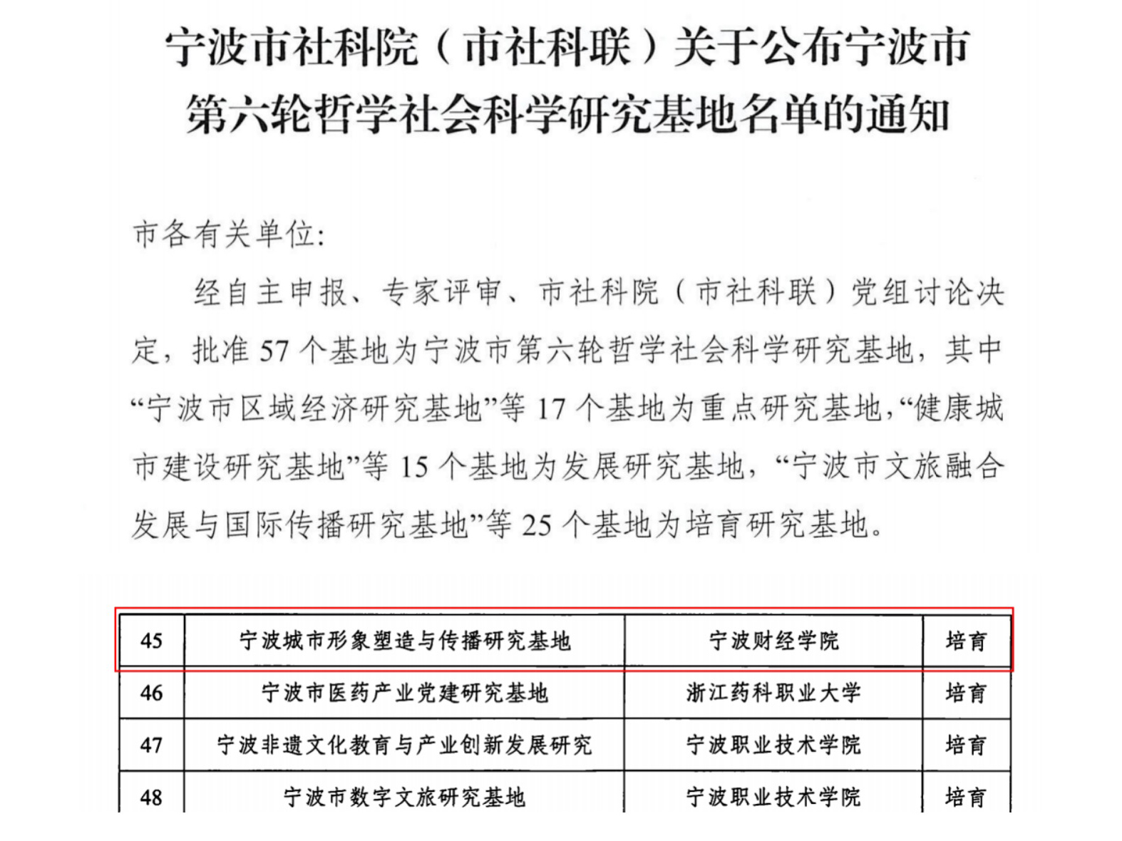 近日,宁波市社会科学院、宁波市社会科学界联合会公布了第六轮哲学社会科学研究基地名单。象山影视学院申报的 宁波城市形象塑造与传播研究基地成功入选培育研究基地,标志着...