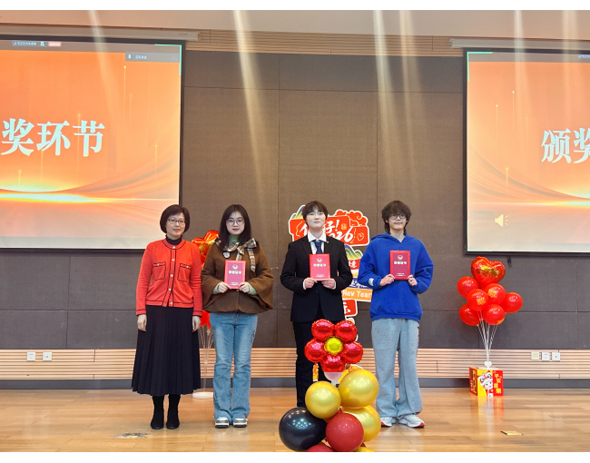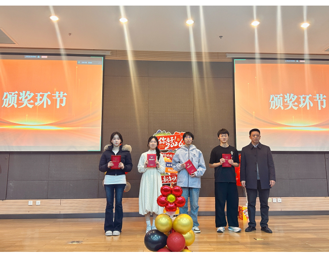 赛事中间,穿插互动环节,气氛热烈:孟祥超老师设计的幸运抽奖程序点燃全场,班级导师相继抽取各类奖项;“寻找惊喜祝福环节”更是温情弥漫——藏于座间的学院领导和各班导师新年祝福,承载着学院的深厚关爱与美好祝愿,传递至每位学子手中。