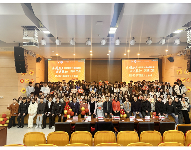 岁聿云暮,新元肇启。2025年12月29日晚,卓越创新学院“卓创新声·国之脉动”讲好新时代中国故事演讲比赛暨2026年迎元旦活动于杭州湾校区图书馆四楼报告厅隆重举行。此次活动,既是一场学院与首届学子共贺新岁的温情盛典,亦是为即将奔赴校本部校区展开新篇的学子精心准备的饯行仪式。学院全体领导班子成员、主持教授、卓创管理团队、部分专任教师以及杭州湾校区全体卓创新生齐聚现场,象山校区学子线上同步观看直播。